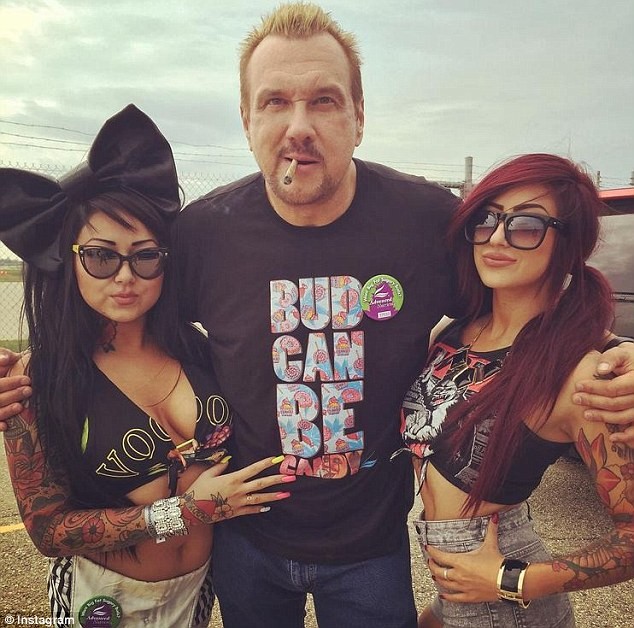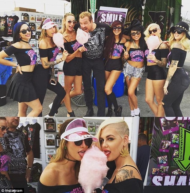 Nhóm phụ nữ hậu cung của Mike "Lớn: đang ăn kẹo bông trong một sự kiện quảng cáo các sản phẩm hỗ trợ người trồng cần sa.