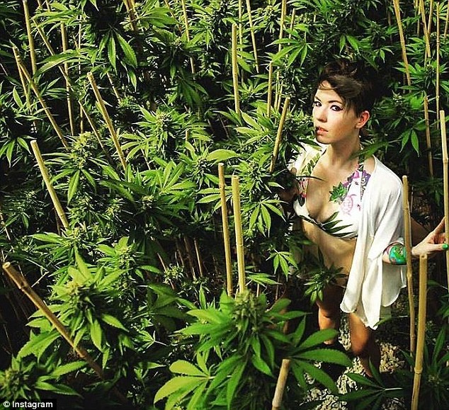 Một trong những mỹ nhân hậu cung của Mike "Lớn" đứng trong vườn cần sa với bộ bikini.