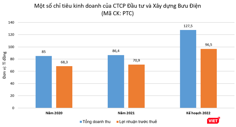 Năm 2022, PTC đặt mục tiêu doanh thu đạt 127,5 tỉ đồng, lợi nhuận trước thuế 96,5 tỉ đồng, trả cổ tức dự kiến từ 15 – 20%.