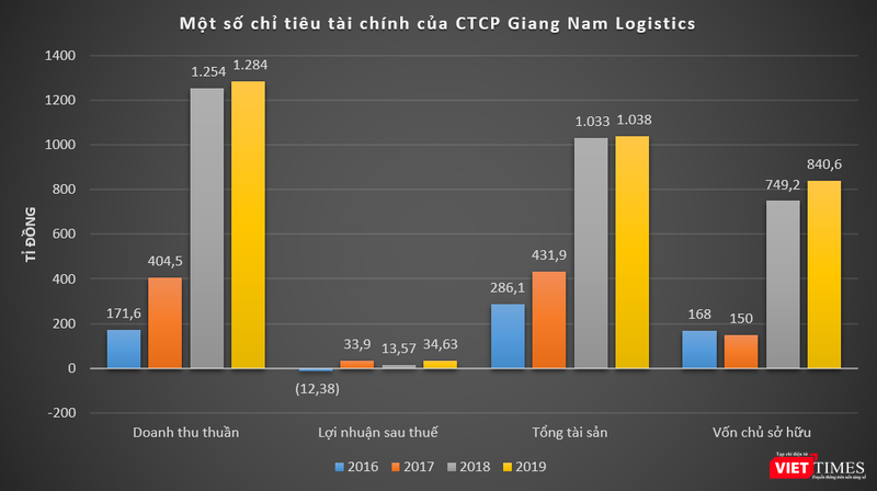 Tương tự, quy mô tài sản của Giang Nam Logistics cũng cán mốc nghìn tỉ vào cuối năm 2018. Tới ngày 31/12/2019, tổng tài sản của công ty đạt mức 1.038 tỉ đồng, vốn chủ sở hữu ở mức 840,6 tỉ đồng.