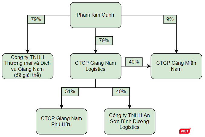 Bà Phạm Kim Oanh còn đứng tên tại CTCP Bến Cát Logistics - pháp nhân thành lập vào tháng 5/2019, đăng ký ngành nghề kinh doanh chính là kho bãi và lưu giữ hàng hóa. Công ty này có vốn điều lệ ban đầu 100 tỉ đồng, trong đó bà Phạm Kim Oanh góp 75 tỉ đồng, sở hữu 75% vốn điều lệ.
