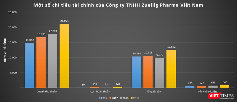 Dữ liệu của VietTimes cho thấy, Zuellig Pharma Việt Nam trong giai đoạn 2016 – 2019 liên tục ghi nhận sự tăng trưởng về doanh thu. Năm 2019, công ty này ghi nhận doanh thu ở mức 21.094 tỉ đồng, báo lãi 144,2 tỉ đồng, tương ứng với biên lợi nhuận chỉ vỏn vẹn ở mức 0,7%./.