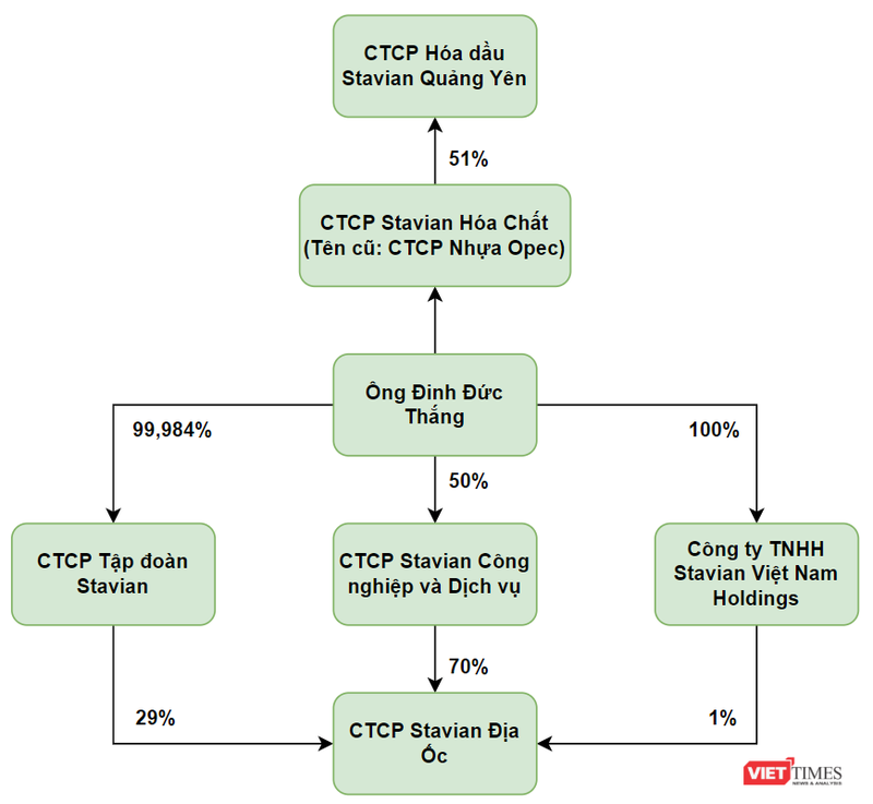 Trở lại với nhà sáng lập Stavian Chemical Đinh Đức Thắng, vị doanh nhân sinh năm 1978 còn đang đứng tên đại diện cho loạt doanh nghiệp khác như: CTCP Stavian Địa ốc (Stavian Land), CTCP Tập đoàn Stavian (Stavian Group), Công ty TNHH Stavian Việt Nam Holdings (Stavian Việt Nam Holdings), hay CTCP Stavian Công nghiệp và Dịch vụ.
