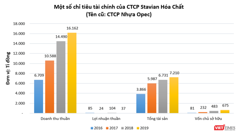 Như VietTimes từng đề cập, giai đoạn 2016 – 2019, Stavian Chemical (hay Nhựa Opec) liên tục tăng trưởng mạnh về doanh thu, vượt trội hơn hẳn so với nhiều “ông lớn” cùng ngành đang niêm yết trên sàn như Nhựa An Phát Xanh (AAA), Nhựa Tiền Phong (NTP) hay Nhựa Bình Minh (BMP).