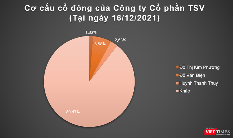 Cập nhật tới tháng 12/2021, TSV Investment có quy mô vốn điều lệ 250 tỉ đồng. Trong đó, dữ liệu của VietTimes thể hiện, các cổ đông sáng lập Đỗ Văn Điện và bà Huỳnh Thanh Thuý (có cùng địa chỉ thường trú) chỉ trực tiếp đứng tên sở hữu tổng cộng 9,21% cổ phần của TSV Investment.