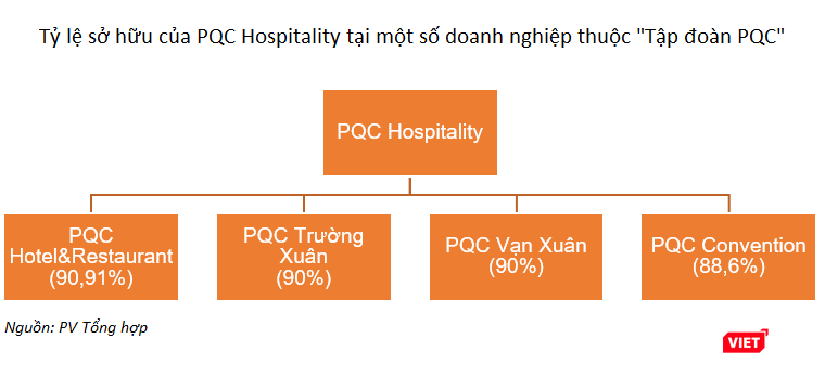 PQC Hospitality là công ty mẹ, góp vốn vào nhiều công ty như: CTCP PQC Hotel & Restaurant (vốn điều lệ 55 tỷ đồng), CTCP PQC Trường Xuân (vốn điều lệ 80 tỷ đồng), CTCP PQC Vạn Xuân (vốn điều lệ 50 tỷ đồng) và PQC Convention (quy mô vốn 510 tỷ đồng).