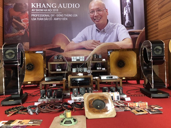 Tại Hà Nội AV Show 2018, Khang Audio đã trình diễn 5 hệ thống audio gồm loa thùng cộng hưởng, loa kèn tre, loa Bongo, loa ViAuris, loa Vilmos với những chiếc amply đèn làm bằng tay cầu kỳ công phu. Không chỉ loa, amply mà hệ thống phụ kiện cũng được Khang Audio tự làm với những vật liệu quý cho audio gồm dây loa, dây AV và lọc điện để tham dự tại triển lãm này.