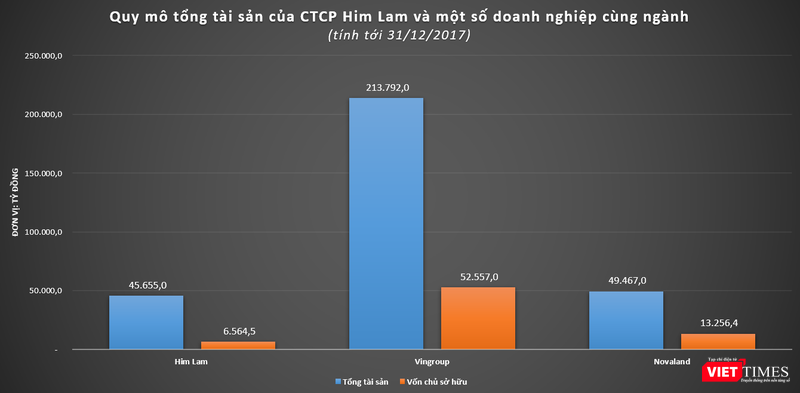Dữ liệu của VietTimes cho thấy, chỉ sau 9 năm đi vào hoạt động, tính đến cuối năm 2017, Him Lam Corp có quy mô tổng tài sản đạt tới 45.655 tỷ đồng, cao gấp 7 lần so với vốn chủ sở hữu, tương đương gần 2 tỷ USD. Trong đó, các tài sản ngắn hạn của Him Lam Corp đạt 29.800 tỷ đồng, chiếm 65% tổng tài sản.