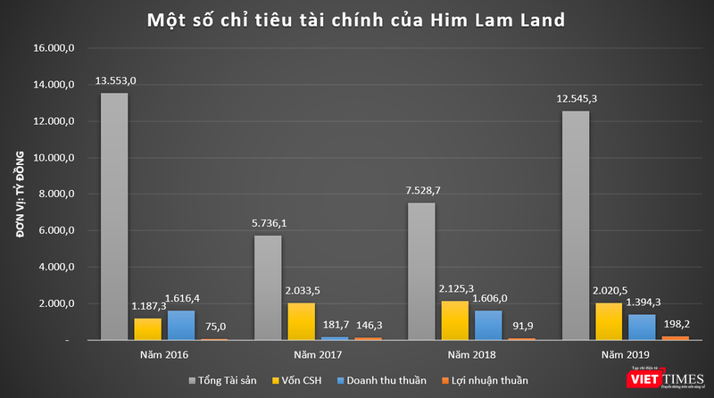 Đầu tư vào hàng loạt dự án, tính đến cuối năm ngoái, quy mô tổng tài sản của Him Lam Land đạt tới 12.545,3 tỷ đồng. Mặt khác, việc đều đặn mở bán và bàn giao các dự án tại TP. HCM trong 4 năm gần đây cũng giúp cho doanh nghiệp này thu về hàng nghìn tỷ đồng doanh thu, liên tục báo lãi lớn.