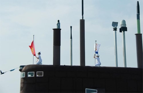 Lá cờ Tổ quốc tung bay trên đài chỉ huy cũng là lúc chiếc biển tên 184-Hải Phòng được gắn lên chiếc tàu ngầm thứ 3 tại Quân cảng Cam Ranh.