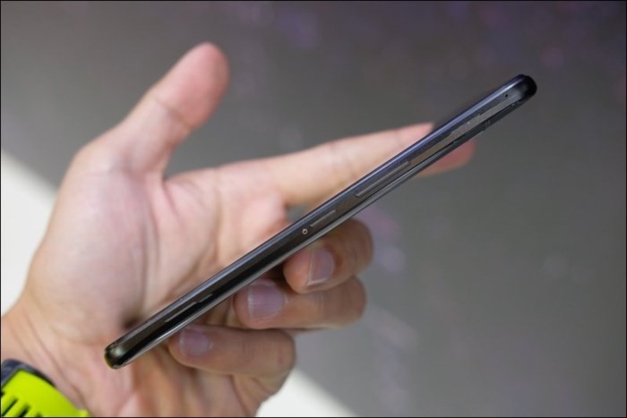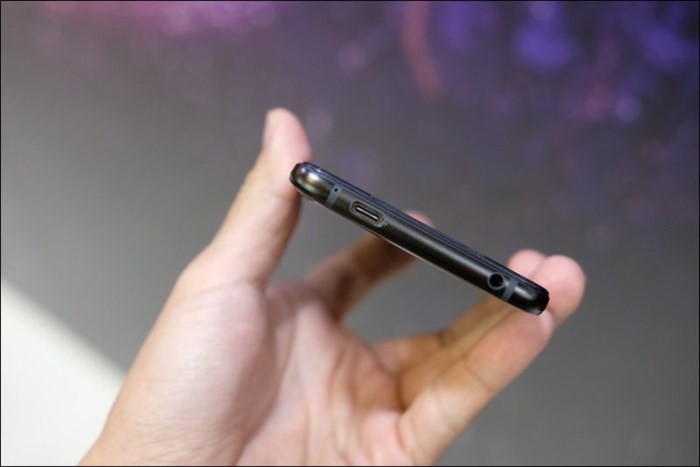 ROG Phone có thiết kế hướng đến trải nghiệm game thủ với các cổng kết nối chính được chuyển sang cạnh bên, nhằm mang lại cảm giác cầm nắm thoải mái nhất.
