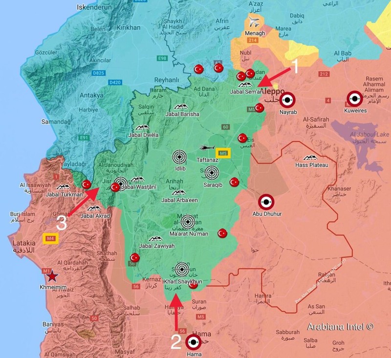 Bản đồ dự kiến kế hoạch tấn công của quân đội Syria trên chiến trường Idlib, bắc Hama