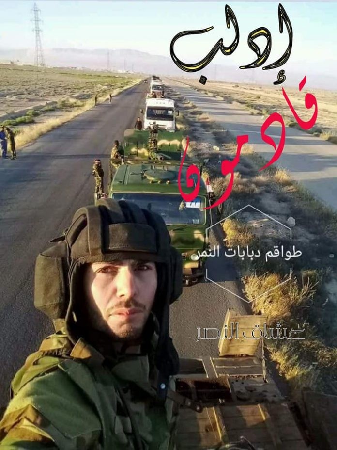 Lực lượng Tiger hành quân chiến đấu về Hama và Idlib. Ảnh truyền thông Tiger