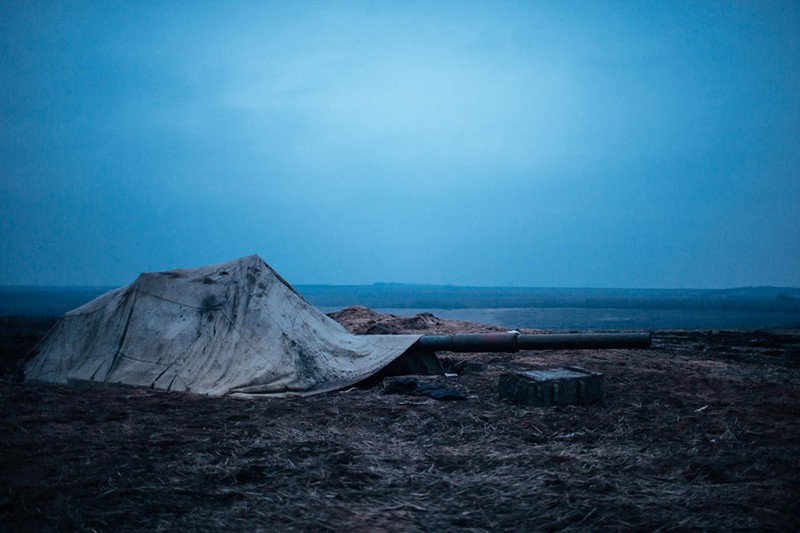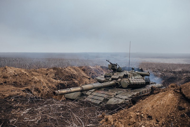 Xe tăng T-64 của dân quân Donesk trong công sự