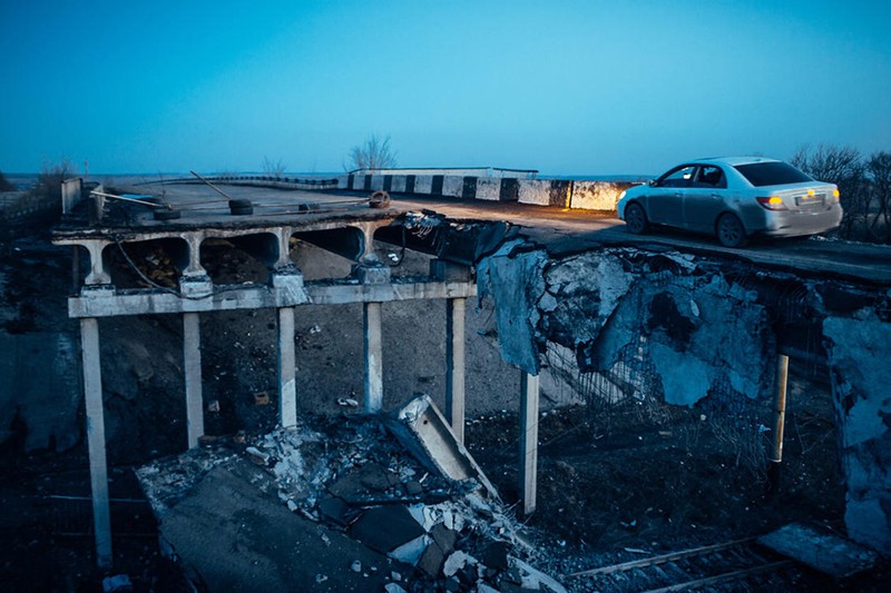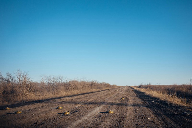 Mìn chống tăng được đặt trên tuyến đường Debaltsevo-Artemovsk.