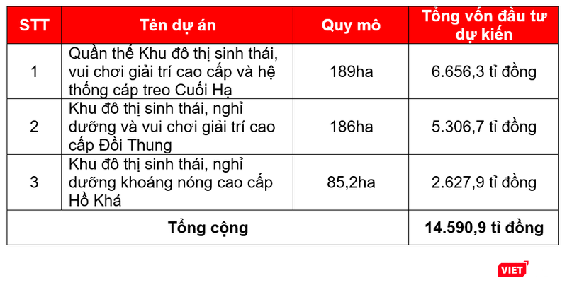 Cụ thể, dự án thứ nhất là “Quần thể Khu đô thị sinh thái, vui chơi giải trí cao cấp và hệ thống cáp treo Cuối Hạ” có tổng vốn đầu tư lên tới 6.656,3 tỉ đồng.