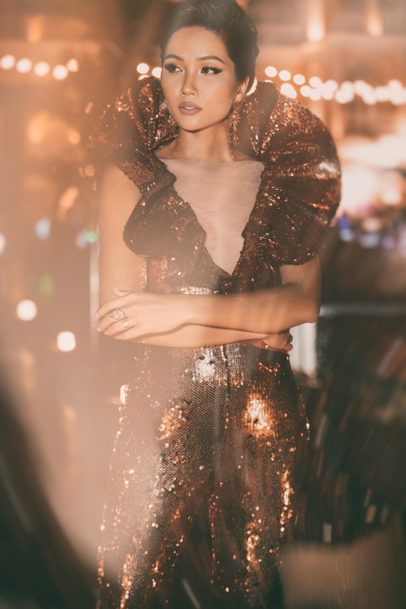 Còn nhớ trong chương trình tiệc tối của Miss Universe, H'Hen Niê diện chiếc váy ngắn bó sát phá cách với các chi tiết ở phần cổ được thiết kế cách điệu vô cùng lạ mắt, giúp H'Hen Niê tạo được ấn tượng mạnh và thu hút sự chú ý của truyền thông cũng như nhận được vô số lời khen của BTC lẫn các thí sinh tham dự chương trình.