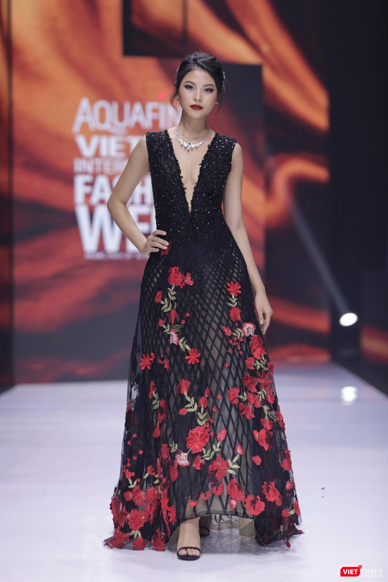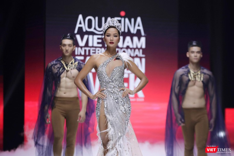 Trong màn 2 của BST, khoác trên mình trang phục đặc biệt được đính kết tỉ mỉ bởi 5 thợ thủ công và trong hơn 700 giờ, Hoa hậu H'Hen Niê đã kết show với trang phục lộng lẫy và xuất hiện với vương miện nhận được sự trầm trồ và thích thú của khán giả.