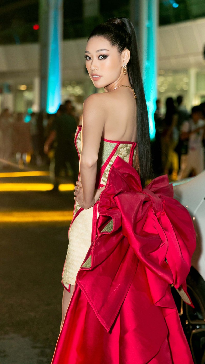 Với chất liệu chính là họa tiết từ chiếu, bộ trang phục tâm huyết mà nhà thiết kế Nguyễn Tiến Truyển dành riêng cho hoa hậu Khánh Vân khiến cô nổi bật trên thảm đỏ.