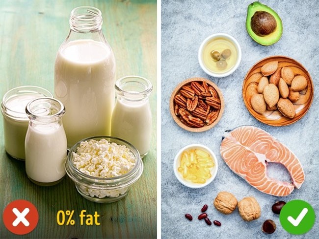 Như với carbohydrate và protein, cơ thể chúng ta cần chất béo, và vì vậy việc trao đổi các loại thực phẩm thông thường có hàm lượng chất béo không phải là cách tốt nhất để cắt giảm lượng calo. Hơn nữa, trong nhiều sản phẩm, việc giảm chất béo được bù đắp bởi hàm lượng đường cao hơn có thể gây hại cho sức khỏe của bạn.