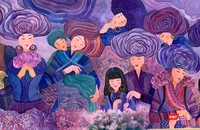 Tranh lụa của Hà Hùng Dũng có tông trầm nền nã |