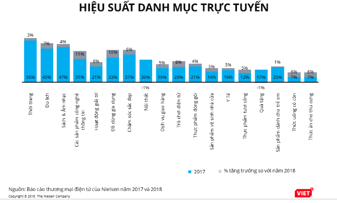 Theo báo cáo Thương mại điện tử của Nielsen 2018, trong số những người tiêu dùng truy cập vào internet thì có đến 98% người tiêu dùng đã mua hàng trực tuyến, tăng hơn so với năm 2017. Báo cáo cũng cho thấy 17% người tiêu dùng đã sử dụng các nền tảng công nghệ để mua các thực phẩm tươi sống, góp phần thúc đẩy sự tăng trưởng của ngành hàng tiêu dùng nhanh (FMCG) trên kênh thương mại điện tử.