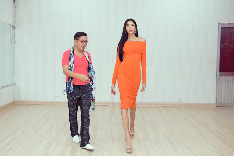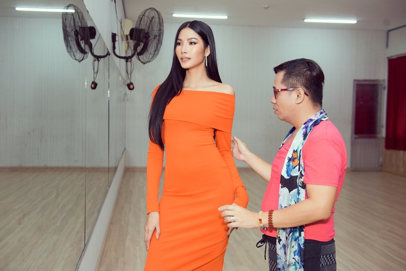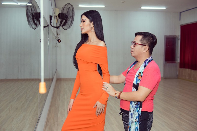 Hoàng Thùy tập luyện catwalk cùng thầy Santos Anjo đến từ Philippines. Cô đã học cùng thầy Santos hơn một tháng và thầy sắp quay trở lại Philippines, chính vì vậy mà Hoàng Thùy muốn tặng một bất ngờ đặc biệt dành cho thầy.