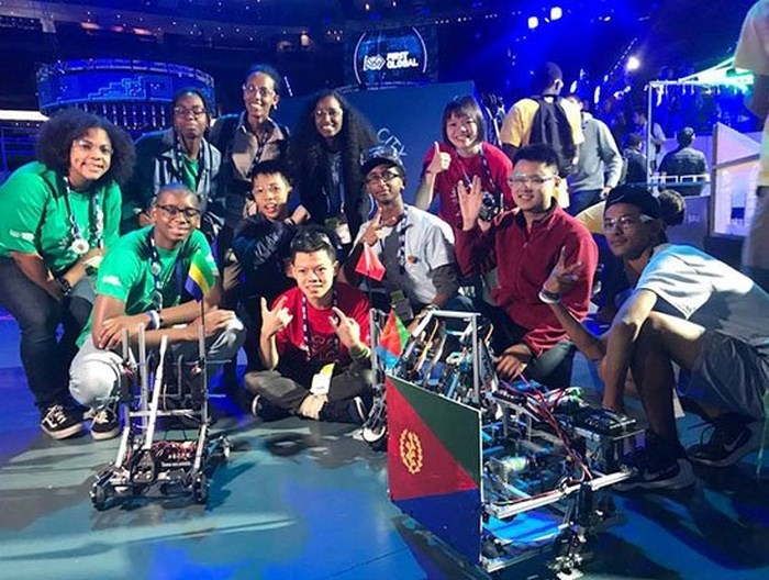 Đội tuyển học sinh Việt Nam cùng các đội tuyển học sinh các nước tại cuộc thi FIRST Global Challenge 2018 (Nguồn ảnh: Team Vietnam - FIRST Global).