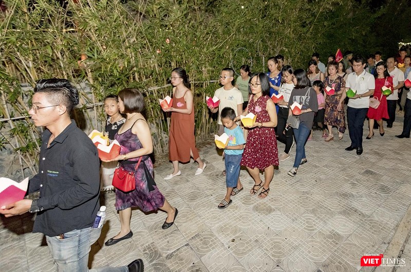 VietTimes -- Tối 14/8 nhằm 14/7 âm lịch, hàng ngàn người dân và du khách đã đổ về công viên Ấn tượng Hội An (TP Hội An, Quảng Nam) để cùng thắp sáng 7 đài sen lớn mừng mùa Vu Lan 2019.