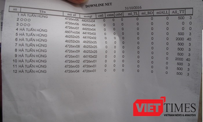 Được biết, ông Hùng đã bỏ ra gần 100 triệu để mua 10 mã tham gia mạng lưới này. Do sức khỏe ông yếu nên cả 10 mã này đều ở dịch vụ chăm sóc sức khỏe.