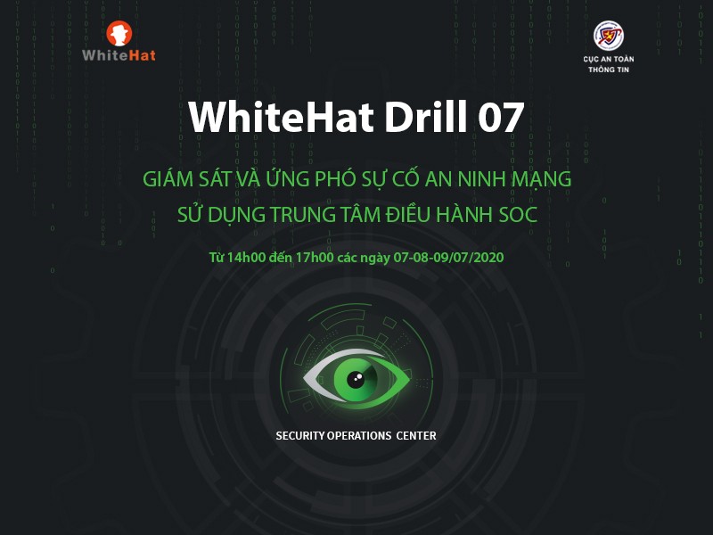 WhiteHat Drill 07 bao gồm các tình huống mô phỏng kịch bản hệ thống của đơn vị bị tấn công APT (có chủ đích, sử dụng mã độc). Các đội sẽ trực tiếp vận hành hệ thống SOC để giám sát, phát hiện dấu hiệu tấn công, chủ động ứng cứu, bảo vệ hệ thống thông tin thuộc quyền quản lý, từ đó giảm thiểu các thiệt hại.