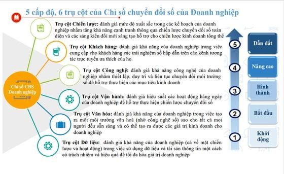 Bộ chỉ số này có 6 trụ cột, gồm trải nghiệm số cho khách hàng, chiến lược, hạ tầng và công nghệ số, vận hành, chuyển đổi số văn hóa doanh nghiệp, dữ liệu và tài sản thông tin. Trong mỗi trụ cột có các chỉ số thành phần và trong mỗi chỉ số thành phần có các tiêu chí.