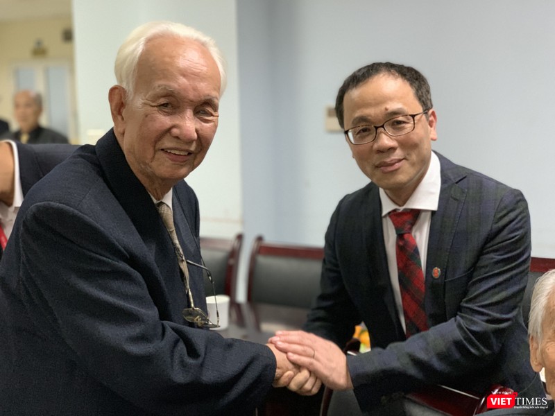 Hai vị giáo sư cao tuổi và tên tuổi: GS Thẩm Trọng Tảo (áo đỏ thẫm) và GS. Đỗ Doãn Đại