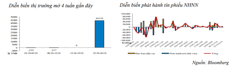Trong khi đó, thông qua kênh tín phiếu, NHNN đã phát hành 2.000 tỷ đồng tín phiếu mới trong khi lượng vốn đáo hạn đạt 4.280 tỷ đồng. Như vậy, tuần vừa qua NHNN đã bơm ròng 2.280 tỷ đồng qua kênh tín phiếu.