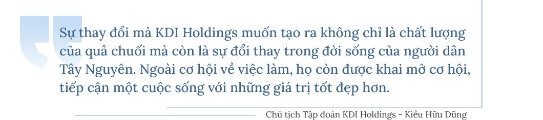 Từ vùng đất khô cằn sỏi đá, KDI Holdings biến nơi đây thành một "ốc đảo" chuối xanh, thay đổi bộ mặt nông thôn và cả đời sống người dân. Vụ Bổn - một trong những xã nghèo vùng sâu của huyện Krông Pắk hầu hết cư dân là đồng bào di cư tự do người Cao Lan, Tày, Nùng, Xê Đăng, Vân Kiều, Dao, Mông... quanh năm chật vật gánh nặng mưu sinh. Nhưng cuộc sống của hàng trăm hộ nghèo nơi đây thay đổi từ khi dự án của Công ty Cổ phần KD Green Farm triển khai thành công với giống chuối Cavendish Nam Mỹ.