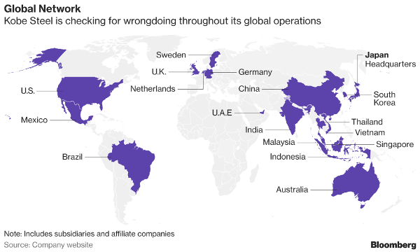 Ông lớn nói trên chính là nhà sản xuất thép lớn thứ ba của Nhật, tập đoàn thép Kobe. Tập đoàn chuyên cung cấp nguyên liệu và linh kiện cho nhiều nhà sản xuất trên thế giới tuyên bố vụ giả mạo dữ liệu sản phẩm này đã ảnh hưởng đến 500 công ty khác trong chuỗi cung ứng toàn cầu. Trong số này có cả những tên tuổi hàng gia dụng, điện tử nổi tiếng và những người khổng lồ trong sản xuất ô tô, máy bay như Ford, General Motors, Boeing, Airbus, Panasonic, General Electric...