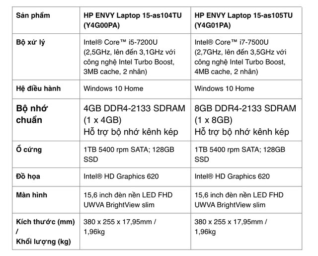 Ngoài ra, hãng còn giới thiệu thêm dòng máy tính xách tay HP Envy 15,6 inch mới (phiên bản 2017) được trang bị vi xử lý Intel Core i7-7500U, ổ SSD, 3 cổng USB 3.1 Gen 1 (1 cổng có chế độ sạc khi máy đang ở chế độ ngủ) và công nghệ khuếch đại âm thanh HP Audio Boost.