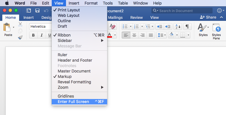 Hoặc vào View > Enter Full Screen (Command + Alt + F).