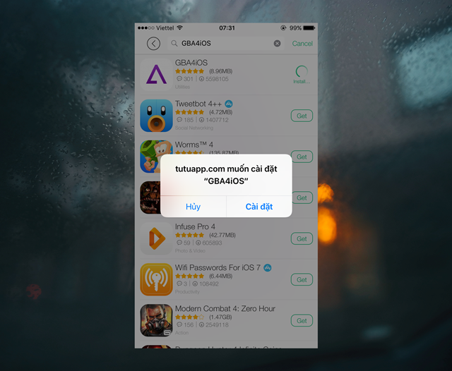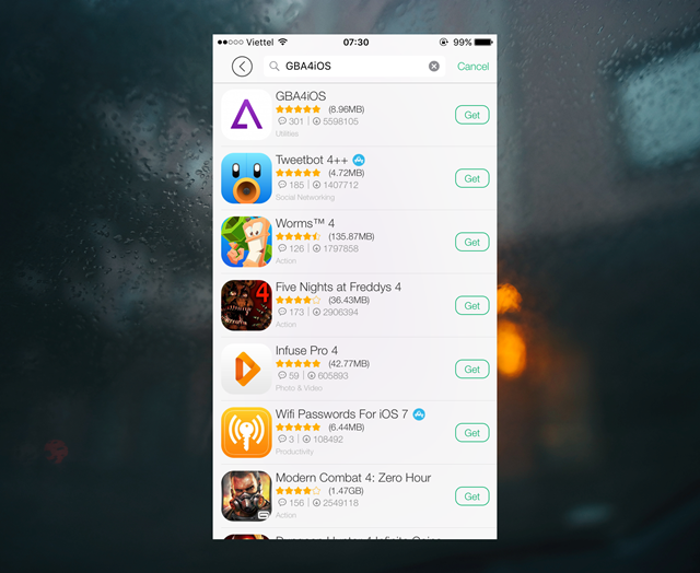 Chờ vài giây để khởi động ứng dụng, sau đó bạn hãy nhấp vào ô tìm kiếm và nhập vào đó từ khóa “GBA4iOS”. Khi đã thấy kết quả tương ứng, hãy nhấn “Get” để cài đặt nó.
