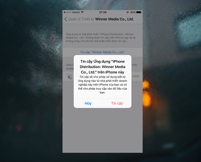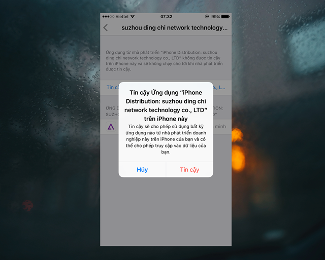 Khi quá trình cài đặt hoàn tất, bạn hãy tiếp tục truy cập vào Cài đặt -> Cài đặt chung -> Quản lí thiết bị để xác nhận “Tin cậy” ứng dụng mới có thể dùng được.