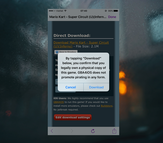 Khi hoàn tất việc tải, GBA4iOS sẽ tự động nhận diện lại tập tin game.