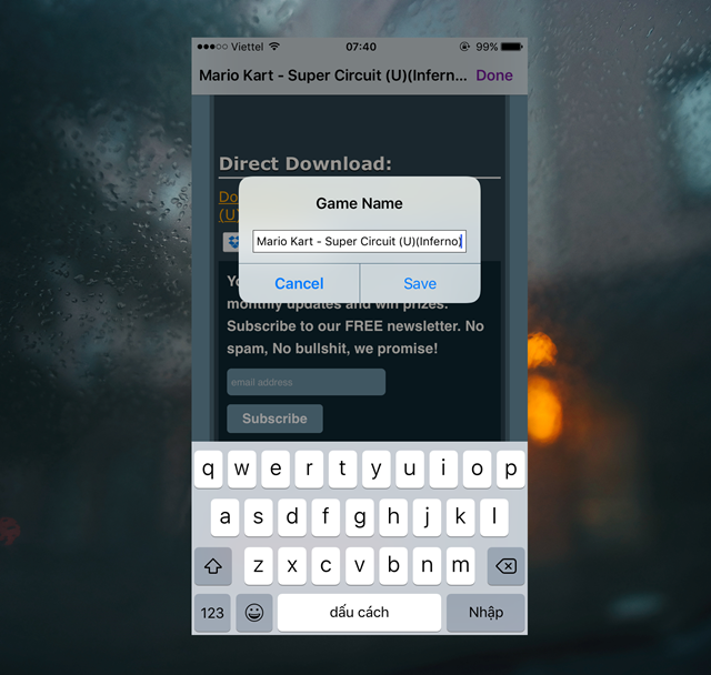 Tiến hành đặt tên cho tập game tải về.