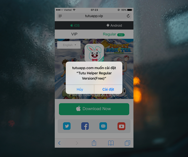 Khởi động trình duyệt Safari trên iPhone và truy cập vào địa chỉ “tutuapp.vip”, sau đó nhấp vào dòng “Regular”.