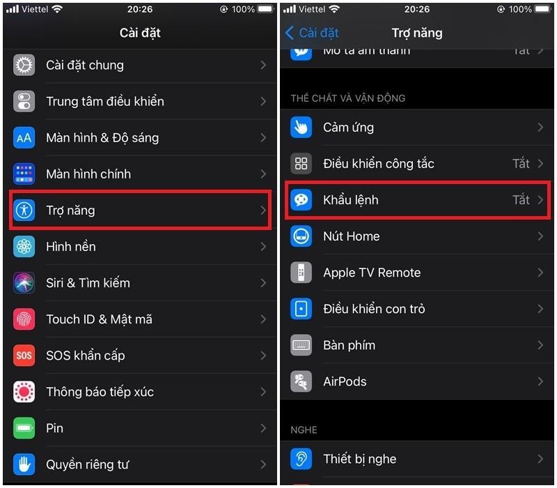 Bước 1 : Bạn mở Cài đặt > Chọn Trợ năng > Khẩu lệnh .