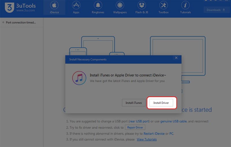 Bước 5: Sau khi hoàn tất quá trình cài đặt drivers cho 3uTools, bạn cắm kết nối iPhone với máy tính