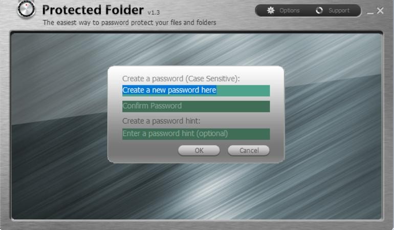 Điền và xác nhận mật khẩu vào hộp thoại tương ứng. Mục "Create a password hint" cho phép người dùng điền nội dung gợi ý về mật khẩu, trong trường hợp bạn quên và cần khôi phục lại mật khẩu bảo vệ của phần mềm. Bạn có thể bỏ trống ở khung này.