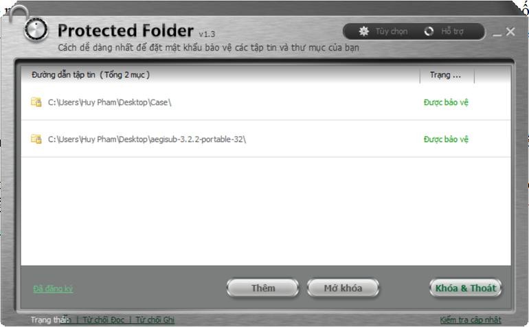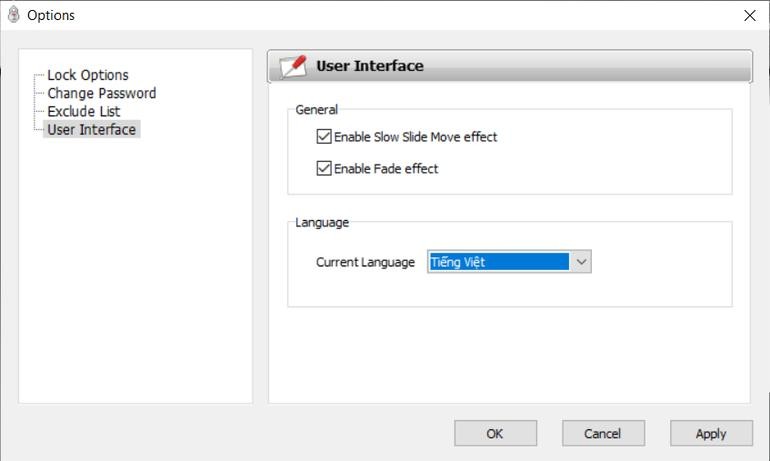 IOBit Protected Folder có hỗ trợ giao diện bằng tiếng Việt, nhưng mặc định sau khi cài đặt, phần mềm vẫn sẽ hiển thị bằng tiếng Anh.
