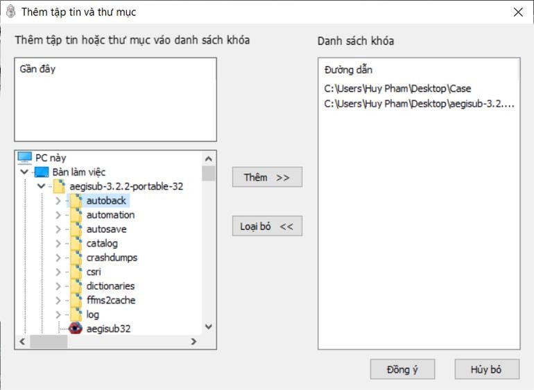 Ngoài ra, bạn cũng có thể nhấn nút "Thêm" từ giao diện chính của phần mềm, rồi chọn những dữ liệu nào muốn đưa vào trạng thái bảo vệ, sau đó nhấn "Thêm" để đưa vào danh sách. Cuối cùng, nhấn nút "Đồng ý" từ hộp thoại để đưa những dữ liệu đã chọn vào phần mềm IOBit Protected Folder.