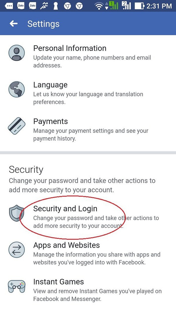 Vào mục Security and Login.