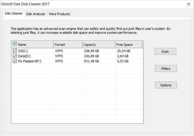 Hiện có rất nhiều phần mềm khác nhau với chức năng dọn dẹp file rác trên ổ cứng, trong đó Gilisoft Free Disk Cleaner là một trong những phần mềm được đánh giá cao. Ưu điểm lớn nhất của phần mềm là miễn phí, có dung lượng rất nhỏ và hoạt động nhẹ nhàng, phù hợp trên cả những máy tính có cấu hình yếu.